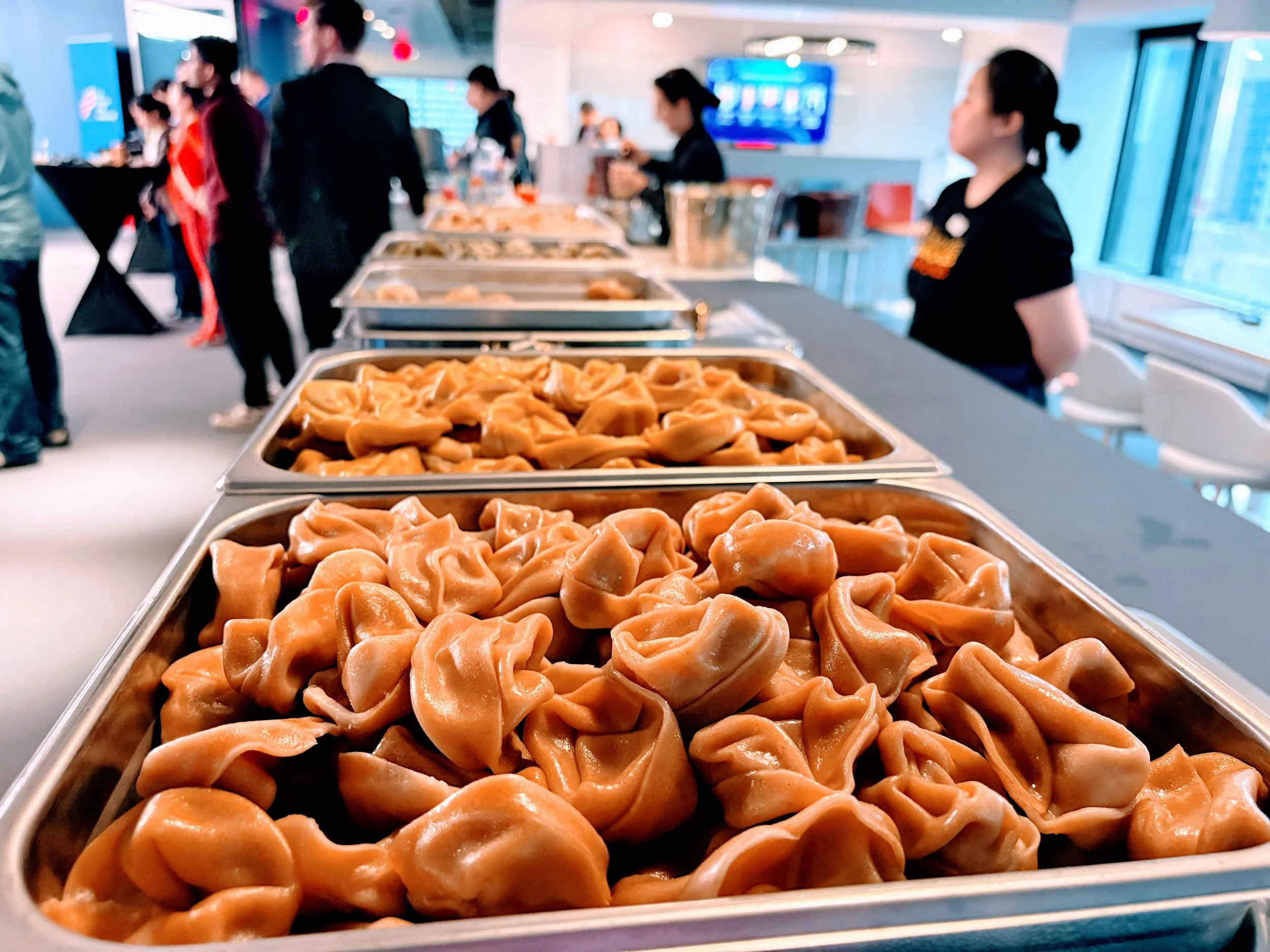 | 30 guests | 4 trays (180 dumplings) | 6 trays (270 dumplings) | 3–4 trays total | Add Cheeseburger or Cheddar Scallion Potato for variety |